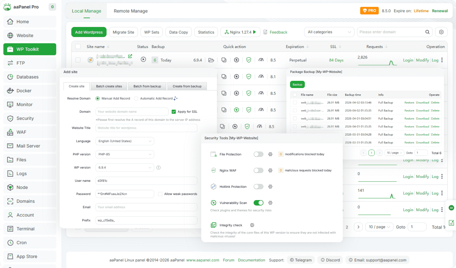One-click backup, restore and enhance WP security, easily and securely manage all your WordPress websites